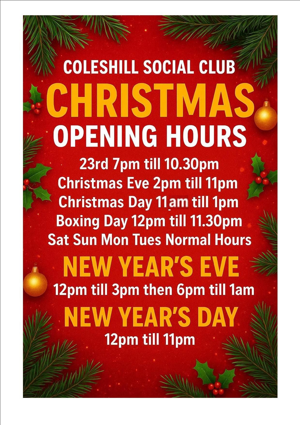Coleshill Social Club Function Room. Please contact Pierre Schrauwen [email protected] for further information.