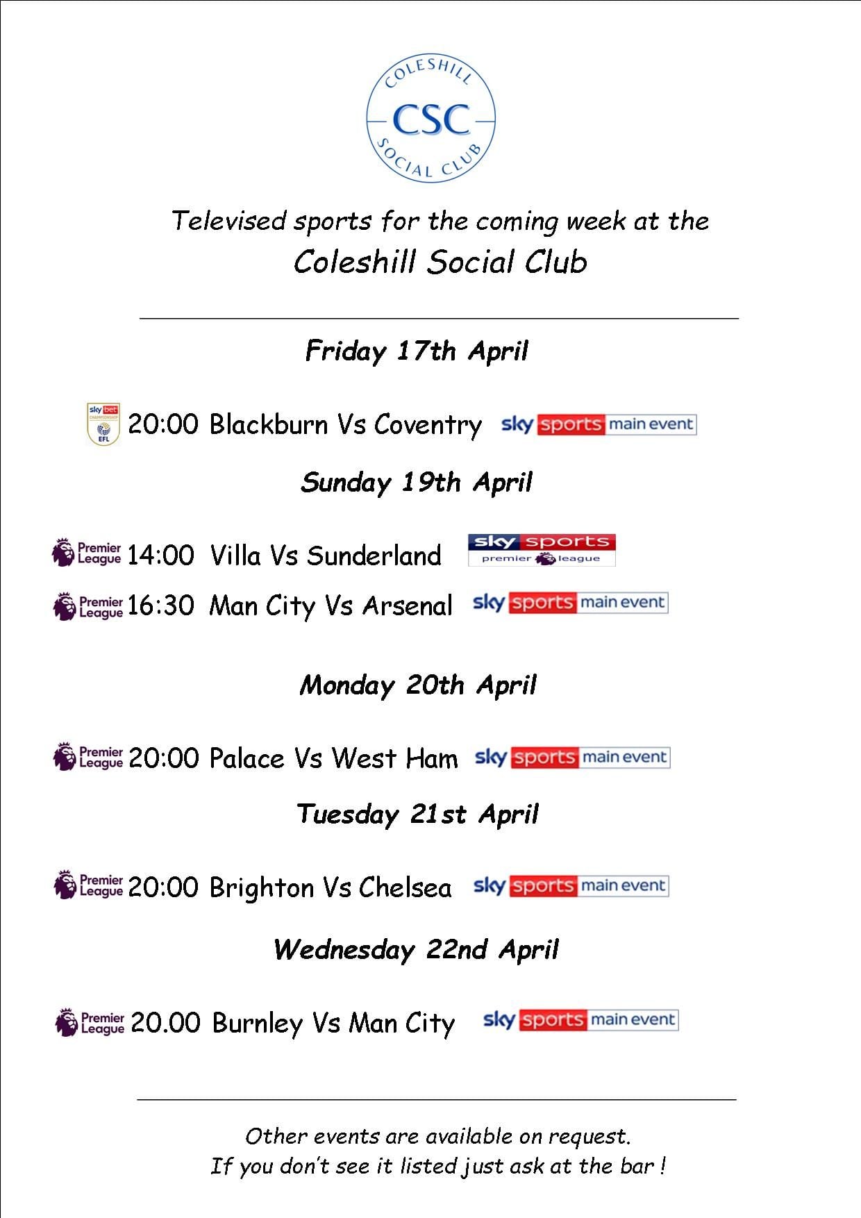 Coleshill Social Club Function Room. Please contact Pierre Schrauwen [email protected] for further information.